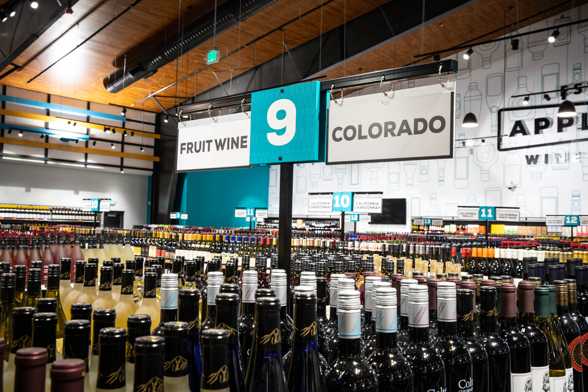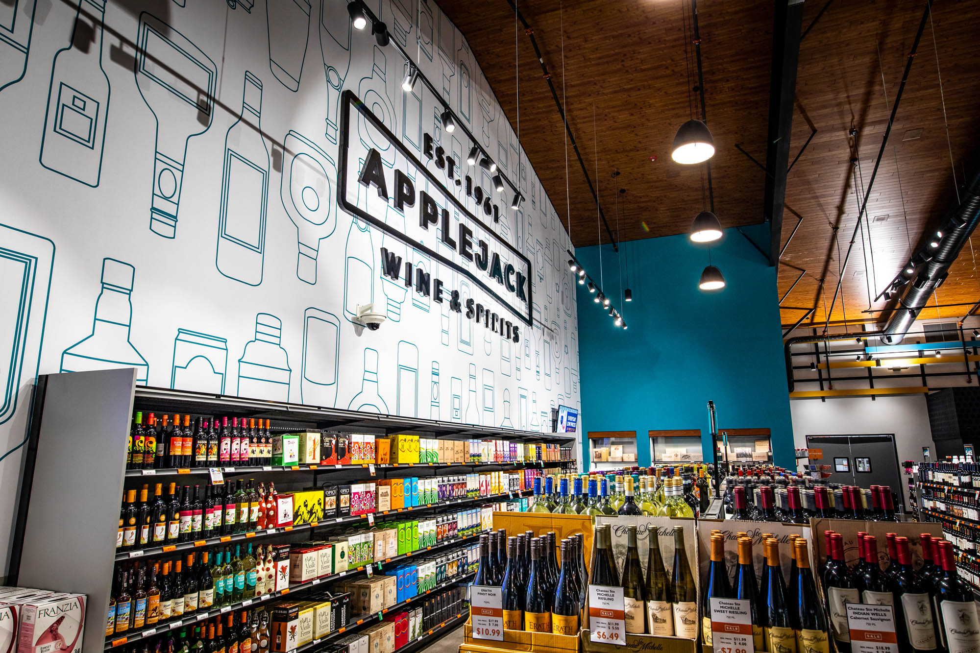 Applejack is one of the largest alcohol retailers in Colorado and with a store that big and with that many potential selections, people need to know where to go. For this we developed a new signage type that is changeable and durable, and helped implement their new brand with custom wall coverings and graphics.